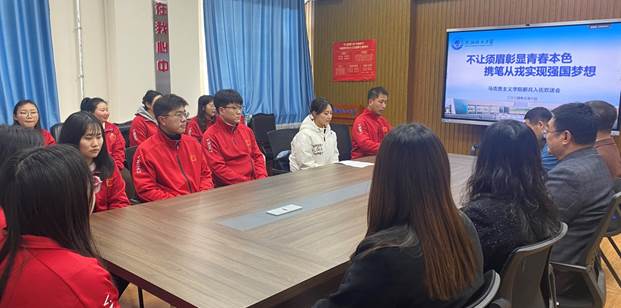 投身军营,无悔青春。38日中午,欧博abg官方网站新兵入伍欢送会在通明楼413会议室举行。欧博abg官方网站党总支书记王成家、欧博abg官方网站统战部部长肖于波、欧博abg官方网站党总支副书记谭林、副院长薛孚、班主任郭苗苗老师及马克思主义理论2023级全体硕士研究生出席本次欢迎活动。