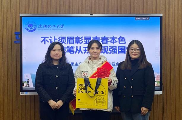 王成家表示,学院一直以来都非常重视大学生征兵工作,对应征入伍的大学生非常关心,学院永远是参军入伍同学的坚强后盾。他希望姜心同学一要胸怀国之大者。将爱国热情转化为报国之志,牢记人民军队性质宗旨,铸就祖国坚强的钢铁长城。二要勇于接受锤炼。坚定忠诚的信念,练就过硬的本领,培育优良的作风。三要争当一流士兵。服从命令、听从指挥、恪尽职守、奋勇争先,争创一流。