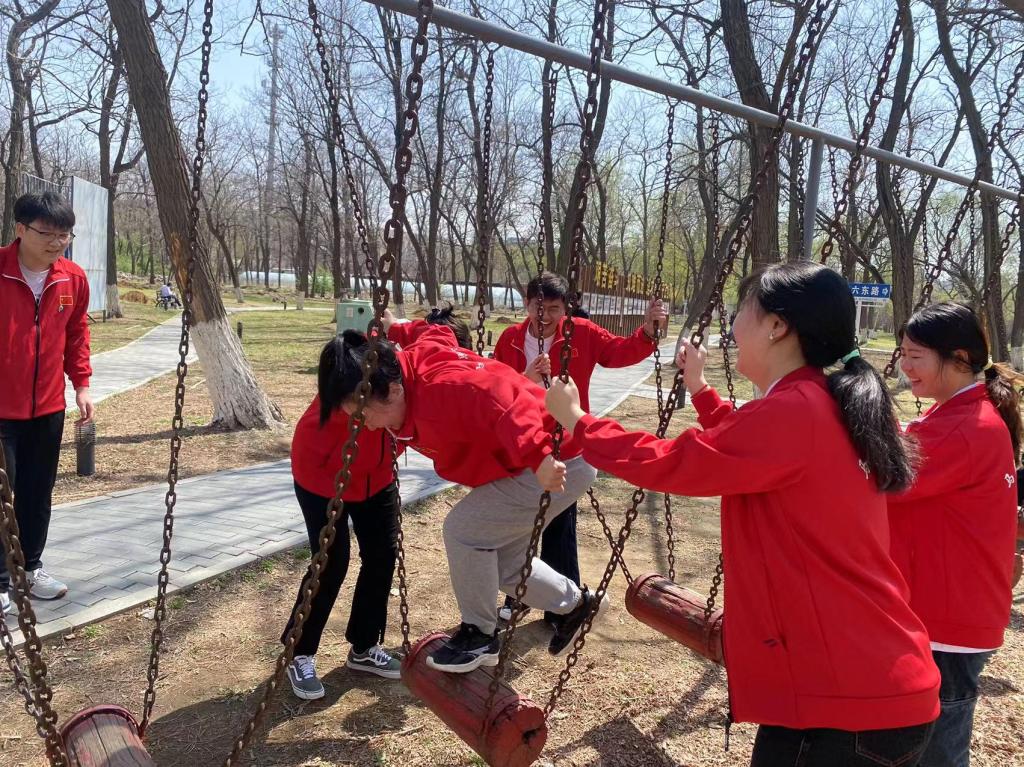 本次心理素质拓展活动包括四个趣味且具挑战性的环节:两人三足、信任背摔、单杠爬行和平衡木。在学院党总支副书记、研究生辅导员谭林老师和班主任郭苗苗老师的组织与指导下,同学们积极参加每项活动,克服困难、团结协作,不仅锻炼了身体,更锻炼了心理素质。