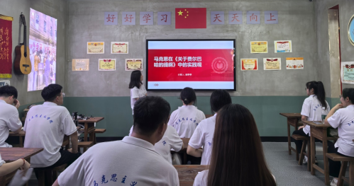 丛鋆同学实践观点的革命性突破为切入点,阐述了马克思通过批判旧唯物主义确立实践在认识世界和改造世界中的核心地位;商亭亭同学结合当代社会现实,探讨提纲中蕴含的人的本质是一切社会关系的总和这一重要论断对理解社会现象的指导意义;傅胜男同学聚焦哲学家们只是用不同的方式解释世界,而问题在于改变世界的观点,强调理论联系实际的重要性;周禹汐同学梳理了马克思主义哲学与旧哲学的本质区别,为同学们带来全新的思考维度。分享过程中,同学们积极互动,就经典文本中的难点、疑点展开热烈讨论。
